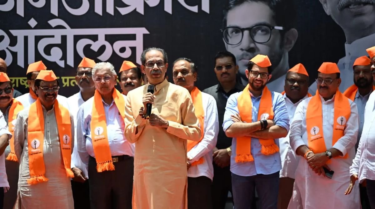 शिवाजी पार्क येथील मॉंसाहेब मीनाताई ठाकरे यांच्या पुतळ्यासमोर आयोजित जनआक्रोश आंदोलनात उद्धव ठाकरे यांनी मार्गदर्शन केले. सत्ताधाऱ्यांशी संघर्ष करायला मर्द लागतो आणि तो शिवसेनेतच आहे म्हणून राज्याच्या प्रत्येक जिल्ह्यात भ्रष्टाचाऱ्यांविरुध्द शिवसेना रस्त्यावर उतरली आहे, असे सांगून ठाकरे यांनी,’ भ्रष्टाचाऱ्यांचे करायचे काय, खाली डोके वर पाय, या घोषणेचा धागा पकडून म्हणाले,’ मिंधे बिनडोक्याचे आहेत, त्यांना नुसते पाय आहेत सुरतेला आणि गुवाहाटीला पळून जायला, त्यांची डोकी नाहीत खोकी आहेत, दिल्लीत इंडिया आघाडीतर्फे सर्व खासदारांनी निवडणूक आयोगावर मोर्चा काढला आणि महाराष्ट्रात भ्रष्टाचाराविरुध्द शिवसेना रस्त्यावर उतरली. भारतीय जनता पक्षाच्या जुलुमशाहीविरुध्द जनतेला आता रस्त्यावर उतरावेच लागेल. ती फक्त नेतृत्व कोण करतेय, याची वाट पाहतेय, असे सांगून ते म्हणाले की,’ छत्रपती शिवाजी महाराजांचा महाराष्ट्र, शाहू फुले आंबेडकरांचा महाराष्ट्र, साधुसंतांचा महाराष्ट्र असे आपण दरवेळेला सांगतो. महाराष्ट्र नेहमी देशाला दिशा दाखवतो. असा हा गौरवशाली व अभिमान वाटणारा महाराष्ट्र भ्रष्ट आघाडीने कितव्या रांगेत नेऊन बसवला आहे.
