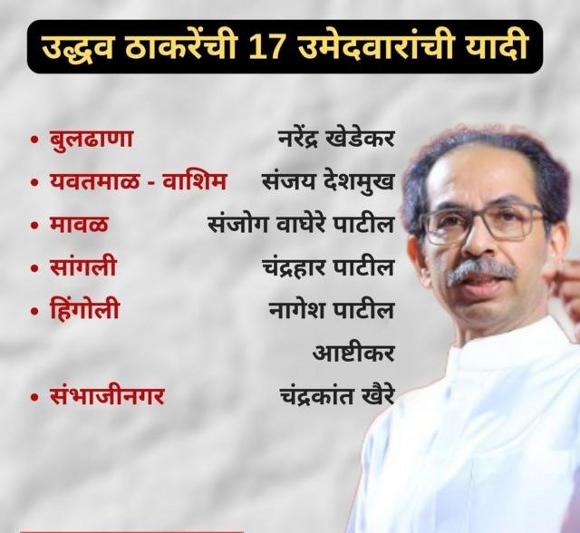 उबाठा-गटाचे संजय राऊत यांनी 17 उमेदवारांची यादी ट्विटरवर जाहीर केलीय. राऊत यांनी जाहीर केलेल्या यादीत वादाचा विषय ठरलेल्या दक्षिण मध्य मुंबई, सांगली लोकसभा मतदारसंघासह एकूण 17 जागांचा समावेश आहे. बऱ्याच वाटाघाटीनंतर सांगली अखेर शिवसेनेनं राखली आहे. तर, काँग्रेसने दावा केलेला दक्षिण मध्य मुंबई हा मतदारसंघही शिवसेनाच लढणार असल्याचे स्पष्ट झाले आहे. याठिकाणी अनिल देसाई यांना रिंगणात उतरवण्यात आले आहे. शिवसेनेच्या उबाठा-गटाने जाहीर केल्यानुसार नरेंद्र खेडेकर (बुलढाणा), संजय देशमुख (यवतमाळ-वाशिम), संजोग वाघेरे-पाटील (मावळ), चंद्रहार पाटील (सांगली), नागेश पाटील-आष्टीकर (हिंगोली), चंद्रकांत खैरे (छत्रपती संभाजीनगर), ओमराजे निंबाळकर (धाराशीव), भाऊसाहेब वाघचौरे (शिर्डी), राजाभाऊ वाजे (नाशिक), अनंत गीते (रायगड), विनायक राऊत (रत्नागिरी-सिंधुदुर्ग), राजन विचारे (ठाणे), संजय दिना पाटील (ईशान्य-मुंबई), अरविंद सावंत (मुंबई दक्षिण), अनिल देसाई (मुंबई दक्षिण मध्य), अमोल कीर्तीकर (वायव्य-मुंबई), संजय जाधव (परभणी) यांना उमेदवारी दिली आहे.
