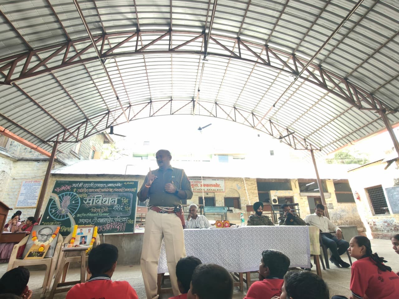 येथील मराठा मंदिर श्री शहाजी हायस्कूल अक्कलकोट येथे बुधवारी भारतीय संविधान दीन व २६/११ शहीद दीन साजरा करण्यात आला. यावेळी प्रमुख पाहुणे म्हणून ते बोलत होते. कार्यक्रमाचा अध्यक्षस्थानी मुख्याध्यापक आर .एस. पडवळकर हे होते. यावेळी व्यासपीठावर, पोलिस निरीक्षक दीपक भिताडे, एन. सी सी चे हवालदार विक्रमजितसिंग, हवालदार अजित जाधव, जेष्ठ शिक्षक वाय.पी.कबाडे, एन. सी सी प्रमुख एस.एस. जवळकोटे आदींची प्रमुख उपस्थिती होती.