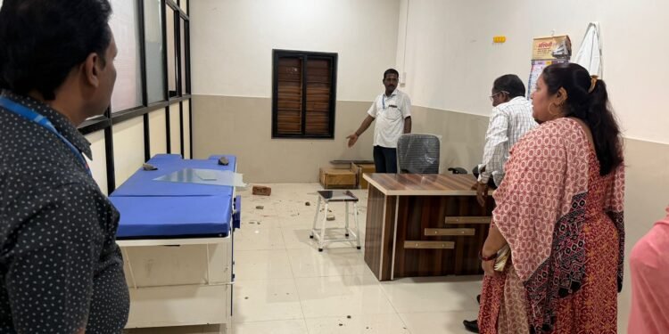 प्रभाग क्रमांक 15 मध्ये कोनापुरे चाळ येथे महापालिकेचे आरोग्यवर्धिनी केंद्र आहे. यापूर्वी या ठिकाणी येथील समाजासाठी समाज मंदिर होते. हे समाज मंदिर पूर्वत समाजाच्या कार्यक्रमासाठी उपलब्ध करण्याची मागणी एका गटाकडून होत होती. दरम्यान, या आरोग्यवर्धिनी केंद्रामध्ये काही अज्ञात व्यक्तींनी शटर उचकटून या आरोग्यवर्धिनी केंद्रातील काचा व इतर वस्तूंची तोडफोड केली. यामध्ये सुमारे 50 हजार रुपयाचे नुकसान झाले आहे. ही माहिती मिळताच महापालिकेच्या आरोग्य अधिकारी डॉ. राखी माने यांनी या केंद्रास भेट दिली. पाहणी केली आणि पुढील सूचना दिल्या. त्यानंतर त्यांनी महापालिका आयुक्तांची भेट घेऊन ही माहिती दिली. दरम्यान, येथील नगरसेविका श्रीदेवी फुलारे यांनीही या केंद्राची पाहणी केली. त्यानंतर महापालिका आयुक्त डॉ. सचिन ओम्बासे यांची भेट घेतली. चर्चा केली. सोलापूर महापालिका सभेत रीतसर ठराव करून हे केंद्र सुरू करण्यात आले आहे. यामुळे पूर्ववत या ठिकाणी हे केंद्र सुरूच राहावे अशी मागणी नगरसेविका श्रीदेवी फुलारे यांनी केली. यावेळी नियंत्रण अधिकारी तथा उपायुक्त आशिष लोकरे उपस्थित होते. दरम्यान, या प्रकरणी यापूर्वीच अज्ञात व्यक्तींविरुद्ध फिर्याद दाखल करण्यात आली होती. त्यानंतर पुन्हा अशी घटना काल रात्री घडली. पदाधिकाऱ्यांनी याबाबत सूचना दिल्या. त्यानंतर संबंधितांना समज देण्यात आली.