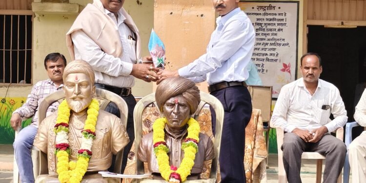 प्रारंभी विद्यालयाचे मुख्याध्यापक दयानंद रेवडकर सर, प्रमुख पाहुणे ग्लोरी इंग्लिश मीडियम स्कूलचे संस्थापक गणेश बुरगुटे, पोलीस पाटील दीपक बुरगुटे, योगगुरु सिद्धेश्वर शिंदे, प्रतिष्ठित ग्रामस्थ अमोल बुरगुटे यांच्या हस्ते कर्मवीर डॉ. मामासाहेब जगदाळे आणि छत्रपती शिवाजी महाराज यांच्या प्रतिमेस पुष्पहार घालून अभिवादन करण्यात आले . एसएससी बॅच १९९४-९५ च्या विद्यार्थींनी रुपये ५,०००/- मूल्य असलेली पुस्तके विद्यालयास भेट दिली.