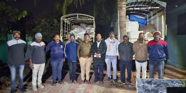 पोलीसांनी या कारवाई मध्ये  एक जेसीबी १६,५०,०००,  चार टिपर ६०,००,०००,  दोन टेम्पो – १३,००,०००,  पांढ-या रंगाचे महिंद्रा कार १५,००,०००, चार दुचाकी वाहने १,४५,०००, तीन ब्रास वाळू १२ हजार रुपये,  पाच मोबाईल फोन किंंमत ७३ हजार रुपये असा एकुण १ कोटी ६ लाख  ८० हजार रुपयांचा मुद्देमाल जप्त करण्यात आला आहे.