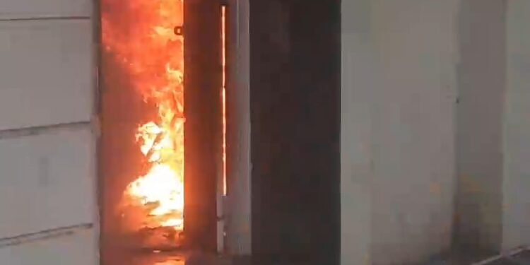 सोलापूर – पद्मशाली चौक येथे असलेल्या देसाई विडी कारखाना क्रमांक 5 आणि 11 मध्ये सकाळी सात वाजता आग लागल्याची घटना घडली. या आगीमध्ये दोन दुचाकी जळून खाक झाल्या आहेत तर विद्युत वायरिंचे मोठे नुकसान झालेले आहे.
