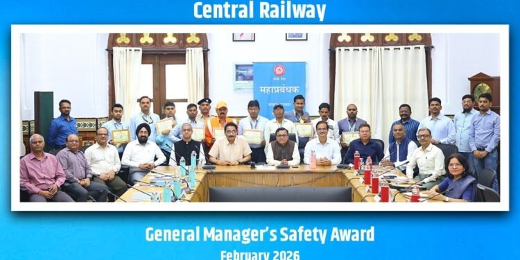 सोलापूर – प्रतीक गोस्वामी, महाव्यवस्थापक, मध्य रेल्वे यांनी ०३.०२.२०२६ रोजी मुंबई येथील छत्रपती शिवाजी महाराज टर्मिनस येथे आयोजित कार्यक्रमात मध्य रेल्वेच्या १२ कर्मचाऱ्यांना संरक्षा पुरस्कार प्रदान करून त्यांचा सत्कार केला. यामध्ये सोलापूर विभागातील दोघांचा सन्मान करण्यात आला.