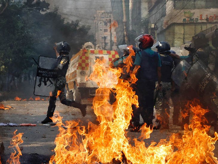 ढाका ,५ ऑगस्ट हिं.स.): बांग्लादेशात सरकारी नोकऱ्यांमधील आरक्षणाच्या मुद्यावरून सुरू झालेले आंदोलन हिंसक झाले आहे, ज्यामुळे देशभरात अराजकता माजली आहे. या आंदोलनादरम्यान एका दिवसात १०० हून अधिक लोक मृत्युमुखी पडले आहेत, त्यात १४ पोलिसांचा समावेश आहे. परिणामी, देशभरात अनिश्चित काळासाठी कर्फ्यू लावण्यात आला आहे आणि इंटरनेट सेवा बंद करण्यात आल्या आहेत.सरकारी नोकऱ्यांमधील कोटा प्रणाली संपवण्याच्या मागणीसाठी हे आंदोलन सुरू आहे.