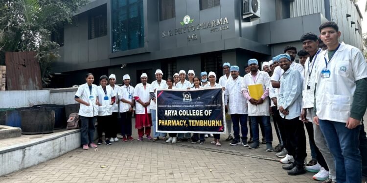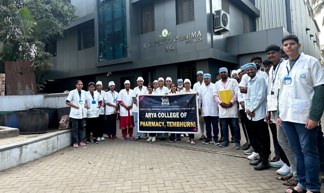 टेंभुर्णी – येथील आर्या कॉलेज ऑफ फार्मसी च्या विद्यार्थ्यांनी डी फार्मसी अभ्यासक्रमाच्या फार्मसी क्षेत्रभेटी अंतर्गत कोल्हापूर मधील एसजी फायटो फार्मा प्रायव्हेट लिमिटेड या औषध निर्माण कंपनीस भेट दिली. या भेटीदरम्यान कंपनीमधील व्यवस्थापकांनी व कर्मचाऱ्यांनी कंपनीमधील सर्व कामकाजाबद्दल तसेच फार्मासिस्टचे फार्मा कंपनीमधील महत्त्व,कार्य याबद्दल सविस्तर माहिती दिली.