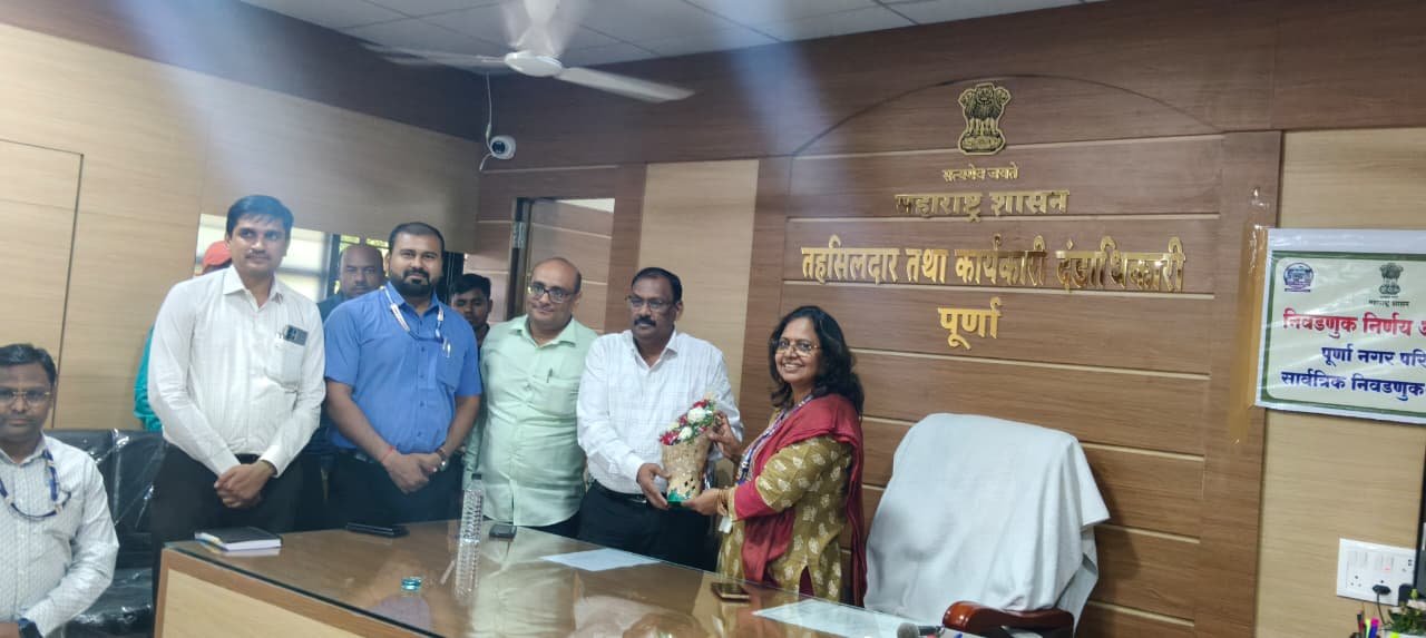 पूर्णा / परभणी – पूर्णा नगरपालिकेच्या निवडणूक साठी नियुक्त करण्यात आलेल्या निवडणूक निरीक्षक सविता चौधर यांनी १७ नोव्हेंबर सोमवार रोजी पूर्णा तहसील कार्यालयात भेट देऊन निवडणुकीचा कामाचा आढावा घेतला.