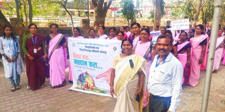 सांगोला – जिल्हा परिषद व पंचायत समिती निवडणुकीसाठी पंचायत समिती, सांगोला अंतर्गत गटविकास अधिकारी उमेशचंद्र कुलकर्णी व स्वीप नोडल अधिकारी अभिजीत मोलाने यांच्या मार्गदर्शनाखाली आयसीडीएस यांचे मार्फत सोमवार दि.२ फेब्रुवारी रोजी सांगोला, वाढेगाव, मेडशिंगी व बामणी येथे मतदान जनजागृती मोहीम घेण्यात आली.