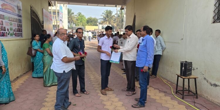 माळशिरस : येथील गोपाळराव देव प्रशाला व ज च आगाशे कनिष्ठ महाविद्यालयात बारावीच्या विद्यार्थ्यांसाठी प्रथमच इथे केंद्र सुरू होत असून आज परीक्षेच्या पहिल्या दिवशी परीक्षेसाठी आलेल्या विद्यार्थ्यांचे संस्थेचे कार्याध्यक्ष ॲड मिलींद कुलकर्णी कार्यवाहक राम दोशी संचालक संतोष कुलकर्णी प्राचार्य धनंजय केसकर उपप्राचार्य जानकर व दीक्षित मॅडम यांनी स्वागत केले