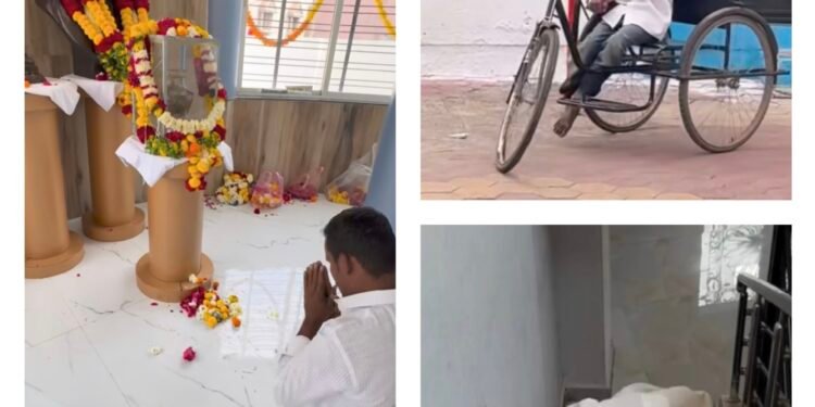 सोलापूर : बुधवार पेठ, मिलिंद नगर येथे सकाळी विश्वरत्न डॉ. बाबासाहेब आंबेडकर अस्थीविहार प्रेरणाभूमी परिसरात एक हृदयस्पर्शी आणि प्रेरणादायी प्रसंग पाहायला मिळाला. दिव्यांग अविनाश हुलसुरे या युवकाने कुणाचीही मदत न घेता स्वतःच्या अंगातील अदम्य इच्छाशक्ती व धैर्याच्या जोरावर पायऱ्या चढून महामानव डॉ. बाबासाहेब आंबेडकर यांच्या अस्थिकलशास वंदन केले. दिव्यांग असूनही अढळ श्रद्धा आणि असामान्य धैर्याने बाबासाहेबांप्रती असलेला त्यांचा ‘भिमप्रेमाचा’ संदेश खऱ्या अर्थाने प्रेरणादायी ठरला आहे.