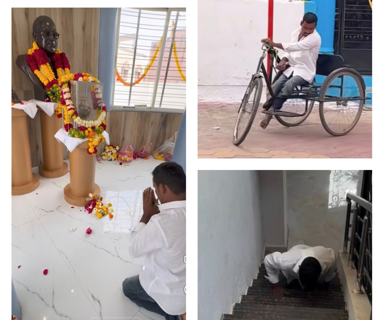 शनिवारी सकाळी महापरिनिर्वाणदिनी मिलिंद नगरातील डॉ. बाबासाहेब आंबेडकर अस्थीविहार प्रेरणाभूमी समोर तीन चाकी सायकलवरून एक दिव्यांग युवक खाली उतरला. ते कोणत्याही व्यक्तीची मदत, आधार किंवा कुबड्या न घेता स्वतःच्या जिद्दीने पहिल्या मजल्यावर चढले. अस्थिकलशाचे मनोभावे दर्शन घेऊन अभिवादन केले. पुन्हा कुणाच्या आधाराशिवाय पायऱ्यावरून खाली आले. त्यानंतर डॉ. आंबेडकरांचा पदस्पर्श लाभलेल्या ऐतिहासिक ‘पंचाची चावडी’ येथेही त्यांनी अभिवादन केले. त्यानंतर आपल्या तीन चाकी सायकलवरून पुढील कामाला ते मार्गस्थ झाले. अविनाश हुलसुरे यांचा हा निष्ठा, त्याग आणि जिद्दीचा प्रवास पाहून उपस्थितांचे डोळे पाणावले. दिव्यांग असूनही अढळ श्रद्धा आणि असामान्य धैर्याने बाबासाहेबांप्रती असलेला त्यांचा ‘भिमप्रेमाचा’ संदेश खऱ्या अर्थाने प्रेरणादायी ठरला आहे.