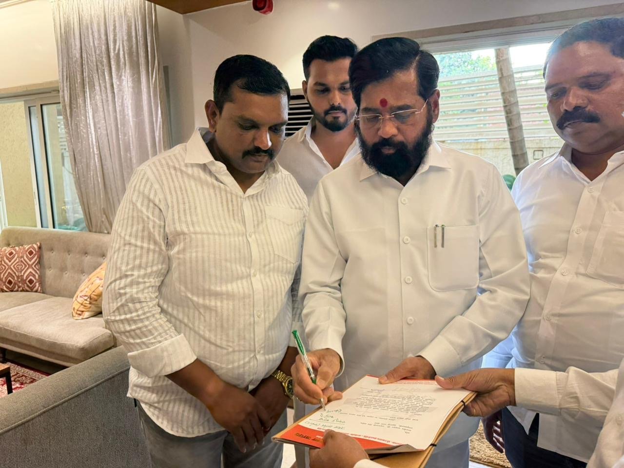 सोलापूर – नुकत्याच पार पडलेल्या सोलापूर महानगरपालिका व जिल्हा परिषद निवडणुकांमध्ये शिवसेना ला शहर-जिल्ह्यात लक्षणीय यश मिळाल्यानंतर सोलापूरातील शिवसेना युवा नेते श्रीनिवास संगा यांनी मुंबई येथे राज्याचे उपमुख्यमंत्री तथा शिवसेना नेते एकनाथ शिंदे यांची भेट घेतली. या भेटीत निवडणुकीतील यश, आगामी राजकीय दिशा आणि सोलापूरच्या सर्वांगीण विकासावर सखोल चर्चा झाली. सोलापूरमधील बेरोजगार युवकांना आयटी पार्कसह विविध औद्योगिक प्रकल्पांच्या माध्यमातून रोजगार उपलब्ध करून देण्यावर विशेष भर देण्यात आला.