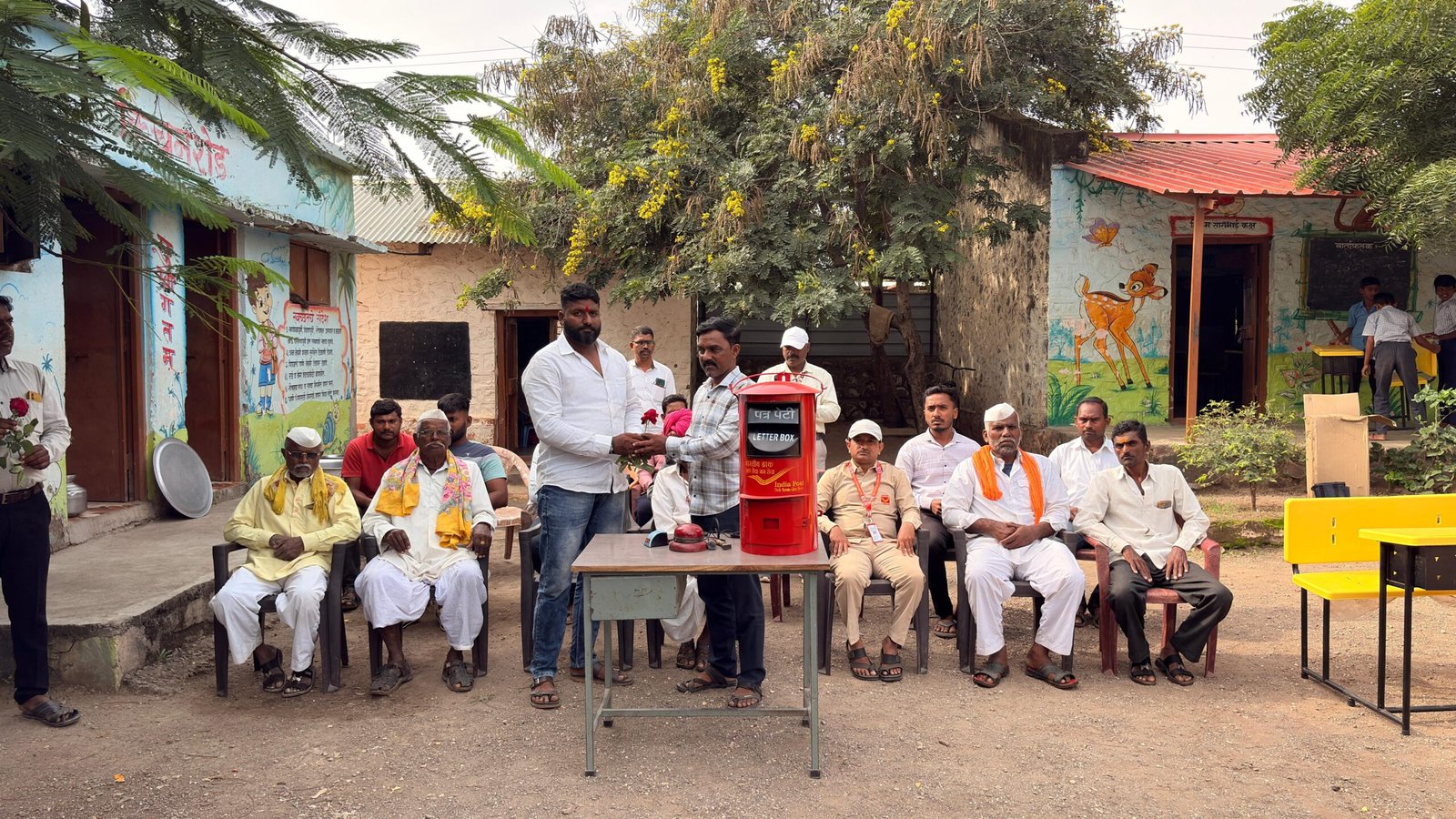 उपस्थितांचे स्वागत सरपंच सचिन काळे,उपसरपंच आनंद शेडगे,ग्रामपंचायत अधिकारी राजकुमार काळे,जि.प.शाळेचे शिक्षक चांगदेव पवार,प्रदीप महामुनी,दिलीप पवार,सिद्धेश्वर घुगरे यांनी केले.कार्यक्रमास जेष्ठ नागरिक पंढरी शेंडगे,गणपत शेंडगे,जयसिंग शेंडगे,सचिन पुजारी,दिपक शेंडगे,सागर काळे ग्रामपंचायत कर्मचारी संतोष कुंभार,विशाल कुंभार संपत शेंडगे,उपस्थित होते. दरम्यान उपसरपंच आनंद शेंडगे हे प्रास्तविक करताना म्हणाले आज हि इंटरनेटच्या युगातही पोस्ट ऑफिस टिकून आहे, त्यांनी ऑनलाइन सेवा, डिजिटल पेमेंट, ई-कॉमर्स सपोर्ट आणि आर्थिक सेवांसारख्या गरजा पूर्ण करण्यासाठी स्वतःला आधुनिक बनवले आहे.